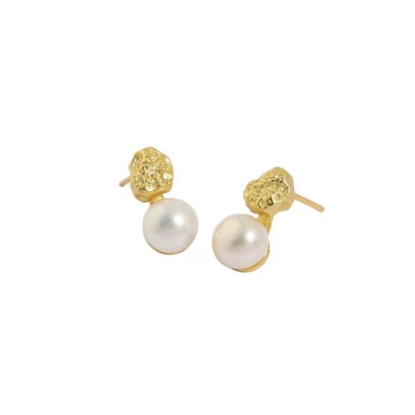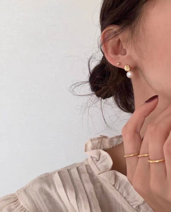 Vetiver pearl Double Texture freshwater pearl earrings
